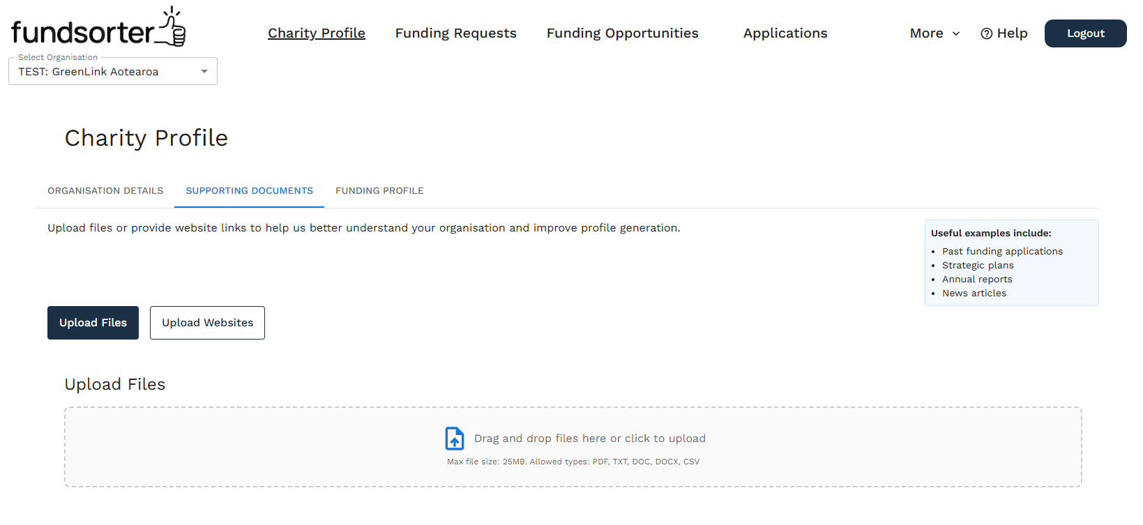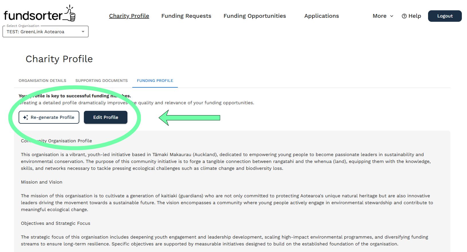 Your Charity Profile is the foundation of your Fundsorter experience. It helps our system understand your organisation's mission, work and funding needs. Fundsorter uses this to match you with the most relevant funding opportunities.